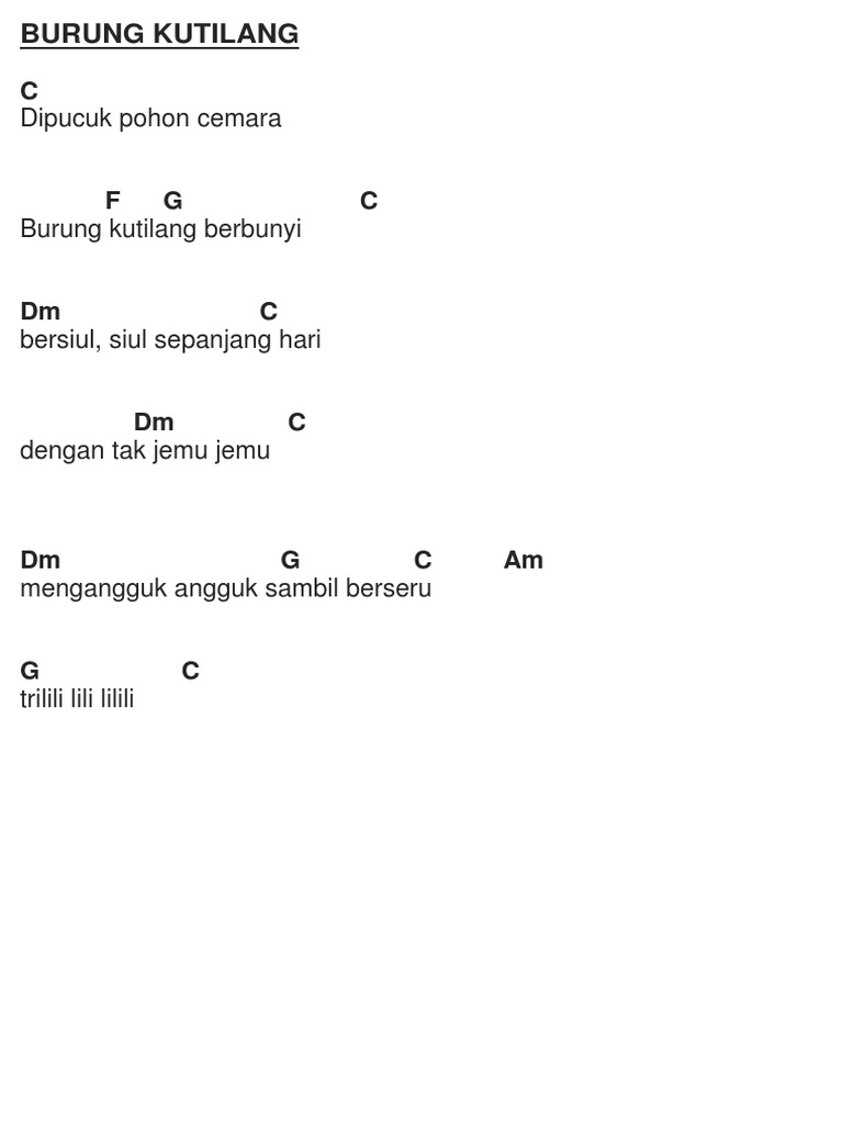 Sehen sie sich ergebnisse an für chord gitar Create and get +5 iq. G d em bm c g am d. E am tapi kini kau memacari cintaku. C namun bila hari ini c adalah yang terakhir dm namun ku tetap bahagia f selalu ku syukuri c begitulah adanya dm g namun bila kau ingin sendiri em a Berikut chord gitar tuhan beta mau dia oleh vicky salamor. There is no strumming pattern for this song yet. C biarkan aku am jadi sesuatu yang berarti dm g untukmu tapi tidak sesaat intro. F g rasa sesal dalam hati. F g kau belahan jiwaku. D g tak perlu kunyatakan. G d c d temanku gitar temanku lagu g d c d nyanyikan tangis marah dan cinta g d c d temanku niat temanku semangat g d c d yang kian hari kian berkarat bm c semakin berkarat em d c em aku berjalan orang cibirkan mulut em d c em G d em d c em c d 2x.